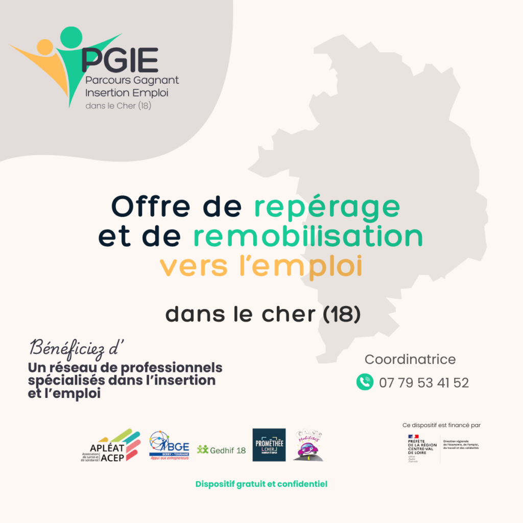 PGIE est porté par les associations Apléat-Acep, BGE Berry Touraine, GEDHIF 18, Prométhée Cher et Gas 18 – Mobilités
